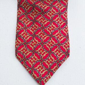 Brooks Brothers Makers Red All Silk Tie Equestrian Gold 55"L X 4"W