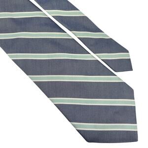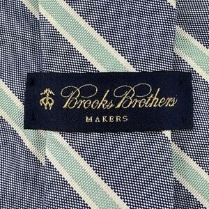 Brooks Brothers Makers Repp Striped Neck Tie Silk Cotton Blend Blue Green 61”