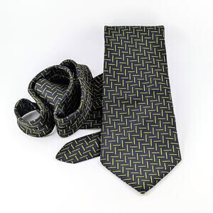 Brooks Brothers Makers Silk Tie Geometric Classic Prep Quiet Luxury Navy Citron