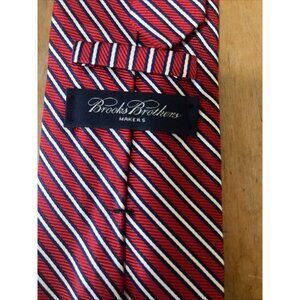 Brooks Brothers Makers Silk Tie Woven In England Hand Made USA Red Blue Stripe