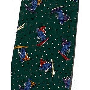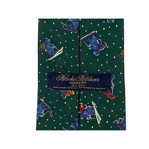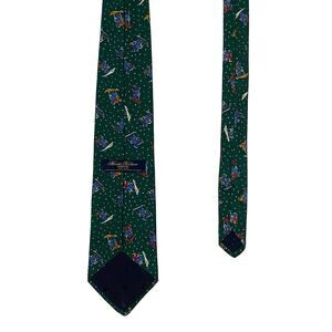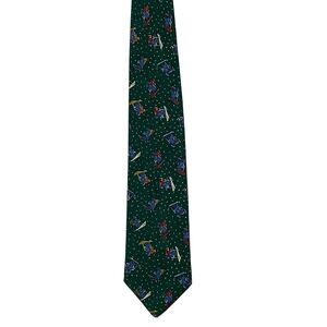 Brooks Brothers Makers Skiing Bear Ski Green Tie Silk Made USA Winter Holidays
