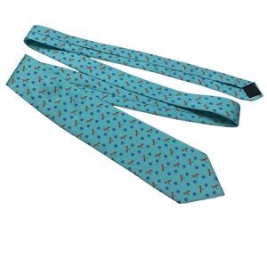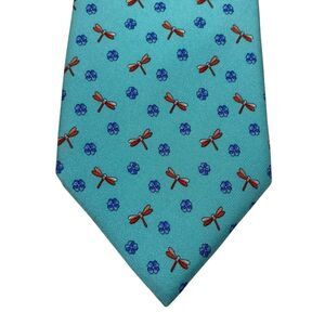 Brooks Brothers Makers Tie Men's Necktie Silk Dragonflies Flowers Turquoise Long