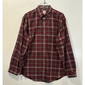 Brooks Brothers Maroon Plaid Button Up Shirt Mens Size XL (1104)