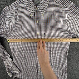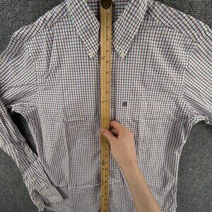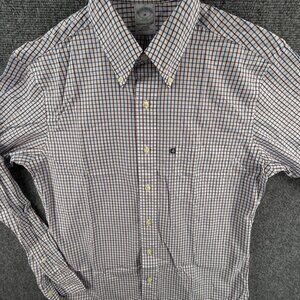 Brooks Brothers Medium Slim Fit Red White Blue Check Long Sleeve All Cotton Logo