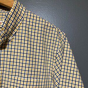 Brooks Brothers Men Check Button Up Shirt Red Fleece Plaid M Yellow Blue Pocket