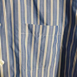 Brooks Brothers Men Shirt Large Regent Blue White Striped Non Iron Supima Cotton