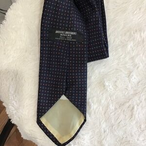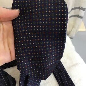 Brooks Brothers Men Tie Navy Blue Multicolor Dot Geometric Silk Printed England