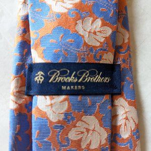 Brooks Brothers Men's 100% Silk Tie - Tropical Design - Coral, Blue, Cream