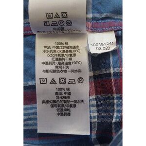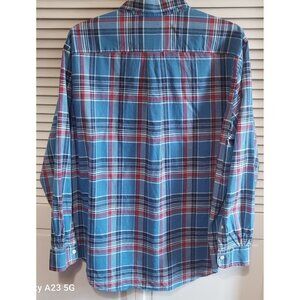 This Brooks Brothers shirt, in size 1XL, offers a professional appearance with its blue and red plaid design. Made from 100% cotton, it ensures comfort and breathability throughout the day. Suitable for a variety of formal and casual settings, it features a classic button-down collar.