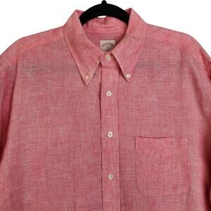Brooks Brothers Mens 346 The Original Polo Linen Shirt Size Large Pink Button Up