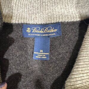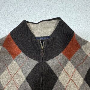 Brooks Brothers Mens Argyle Scottish Lambswool Sweater XL Brown Full Zip Grandpa