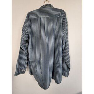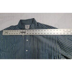Brooks Brothers Mens Blue White Striped Button-Up Sport Shirt Large All Cotton