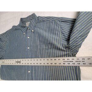 Brooks Brothers Mens Blue White Striped Button-Down Sport Shirt Large All Cotton