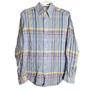 Brooks Brothers Mens Button Up Shirt M Multicolor Scotch Plaid Irish Linen