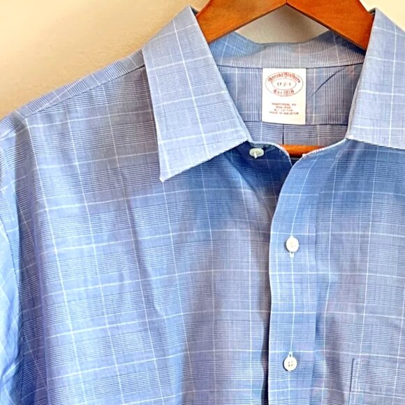 Brooks Brothers Mens Dress Button Down Shirt Traditional Fit Blue Plaid Sz. 17.6