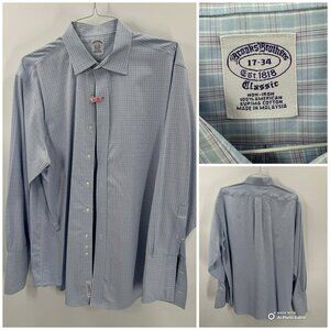 This bundle features ten Brooks Brothers men's dress shirts in size 17-34, offering a mix of timeless colors and patterns. Crafted from high-quality fabrics, these shirts provide a professional appearance and durable wear. Ideal for elevating your wardrobe, they combine classic design with modern comfort and practicality.