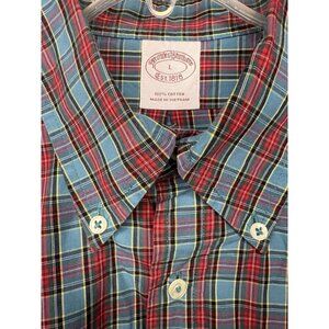 Brooks Brothers Mens Large Plaid Button Down Long Sleeve Shirt Red Blue Yellow