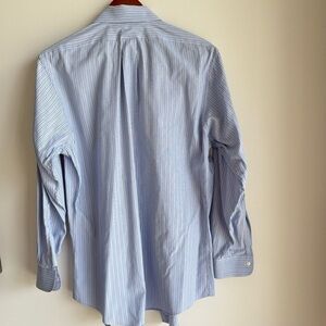 The original polo classic shirt from brooks brothers. Set of two shirts. Both size 15.5 / 32. Color light blue. One shirt is striped, second shirt is plaid small print. Breathable cotton material. Pre-owned, in great condition. Dry cleaned.