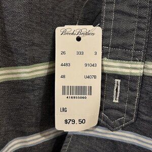 Brooks Brothers Men’s Long Sleeve Grey Button Up Shirt NWT Large Striped