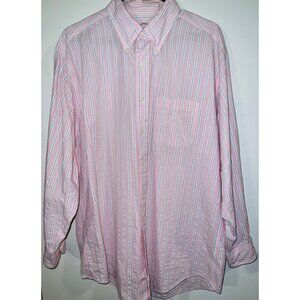 Brooks Brothers Mens Long Sleeve Pink/Blue Pin-Striped Button-Down Shirt L