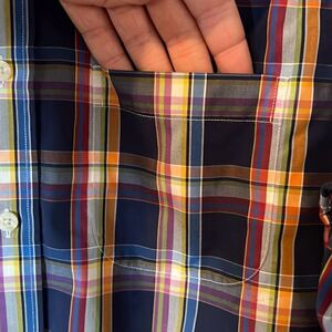 Brooks Brothers Men’s Med Slim Fit Non-Iron Button Down Dress Shirt Blue Orange