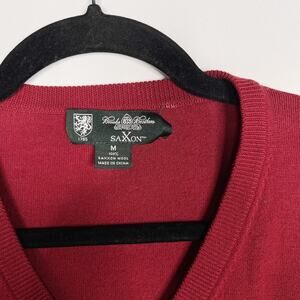 Brooks Brothers Mens Medium Red Saxxon Wool V Neck Sweater Pullover Lightweight