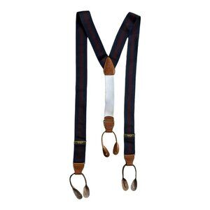 These Brooks Brothers Men's suspenders in navy and maroon stripe design are adjustable and crafted from high-quality silk and leather, adding a dash of classic elegance to your attire.