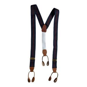 These Brooks Brothers Men's suspenders in navy and maroon stripe design are adjustable and crafted from high-quality silk and leather, adding a dash of classic elegance to your attire.