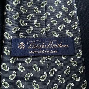 Brooks Brothers Mens Necktie 100% Silk Navy Green Paisley Handmade in USA