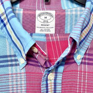 This Brooks Brothers short sleeve shirt offers a clean and classic plaid design. Crafted from 100% cotton, it ensures breathability and comfort for everyday wear. The medium Regent fit provides a tailored yet relaxed feel, making it a versatile choice for both casual and semi-formal settings.