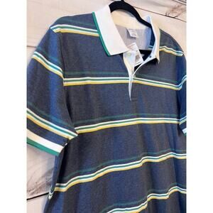 The Brooks Brothers Men's Polo Top in Size XL features a classic striped design in blue, making it perfect for casual occasions. Made from 100% cotton knit fabric, this short sleeve polo has a collared neckline with a button closure. The shirt is machine washable and suitable for summer, fall, and spring seasons. Ideal for a golf enthusiast, this polo is part of the Brooks Brothers 346 product line, bringing quality and style to your wardrobe.