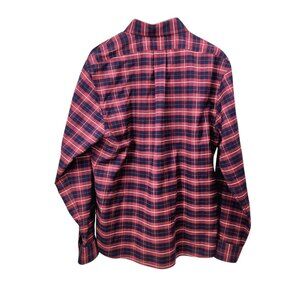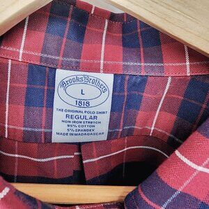 Brooks Brothers Mens Red & Navy Plaid Button-Down Cotton/Spandex Shirt L