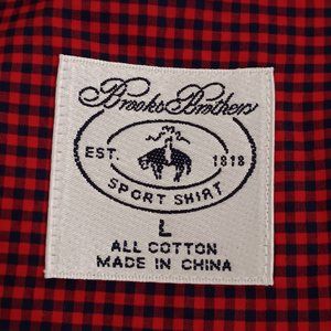 Brooks Brothers Men's Red/Blue Gingham Cotton Long Sleeve Sport Shirt Size L