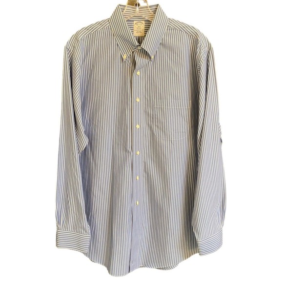 Brooks Brothers Mens Shirt Adult Size 16.5 (4/5) Blue Striped Regent Non-Iron.