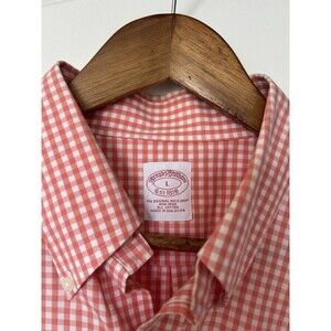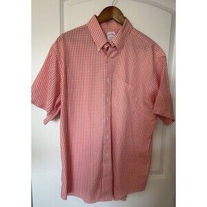 Brooks Brothers Mens Shirt Large Button Up Non Iron All Cotton Plaid Gingham