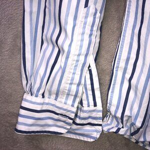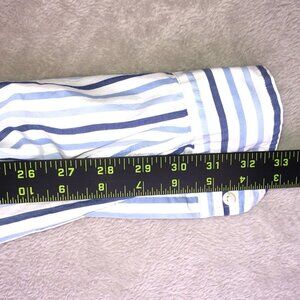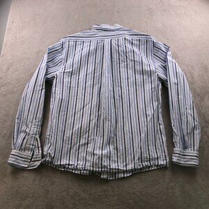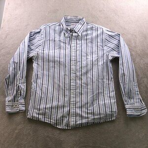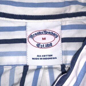 This Brooks Brothers button-down shirt embodies timeless style and comfort. Crafted from soft, breathable cotton, it features a classic striped pattern in blue and white. Ideal for both professional and casual settings, this versatile piece enhances any wardrobe. Its meticulous design and quality craftsmanship ensure long-lasting wear and effortless style.