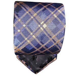 Brooks Brothers Mens Silk Tie Blue & Gold Plaid Pattern