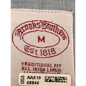 Brooks Brothers Mens Size Med Blue 100% Irish Linen Short Sleeve Button Up Shirt