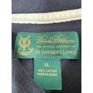 Brooks Brothers Mens St Andrews Golf Links Polo Shirt Size XL Navy White Striped