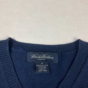 Brooks Brothers Mens Sweater M Blue Merino Wool Blend V-Neck Classic Pullover