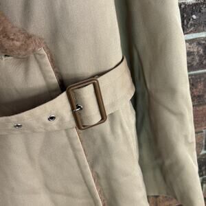 Brooks Brothers Mens Vintage Trench Coat 46 Large Tan Khaki Fur Double Breasted