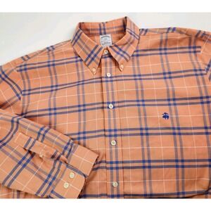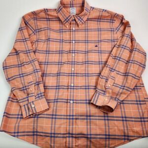Brooks Brothers Mens XXLarge Orange Blue Plaid Slim Fit Non Iron Long Sleeve