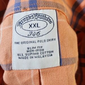 Brooks Brothers Mens XXLarge Orange Blue Plaid Slim Fit Non Iron Long Sleeve. Condition is Pre-owned - Excellent. Shipped with USPS Ground Advantage.
