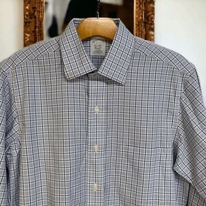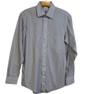 Brooks Brothers Mens size neck 15 Small Blue white plaid button up shirt