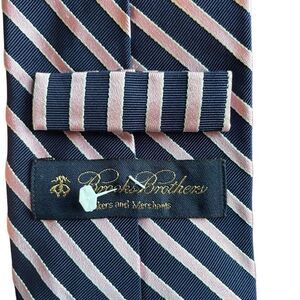 Brooks Brothers Mens Necktie 100% Silk Navy White Pink Striped Hand Made