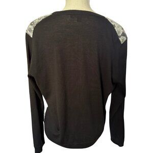 Brooks Brothers women’s extra-fine Italian merino wool cardigan. Black knit with elegant white floral front panel. Button front, soft luxury feel, timeless classic style.