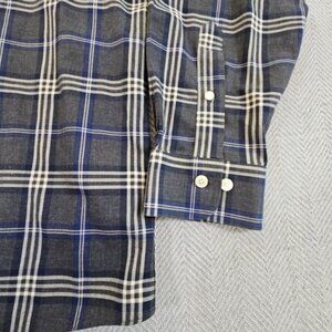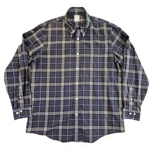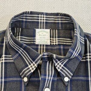 Brooks Brothers Milano Shirt Men's XL Long Sleeve Button-Up Blue Gray Plaid EUC