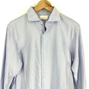 Brooks Brothers Milano Shirt Size 16 Mens Blue Herringbone Non Iron Button Up