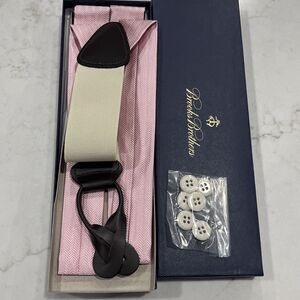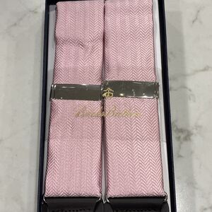 Brooks Brothers NEW Silk Leather Lt Pink Suspenders Braces Herringbone Pattern