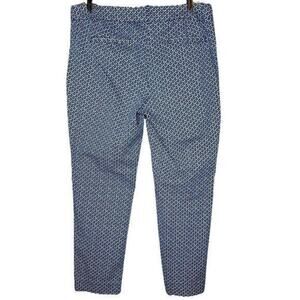 Brooks Brothers Natalie Fit Pants Blue Scalloped Print Straight. Front and back slit trimmed pockets. Belt loops. One button and zip closure.